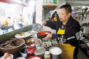 昨日中午12点左右,记者来到现场。正值饭点,来吃面的客人很多。“这个店我开了4年了,一直叫这个名字。”店主任健一边煮面,一边向重庆晚报记者介绍,“我曾想了两个名字:传统老面、老实面庄,但都觉得不满意,没有特色,所以才起了小面公司这个名字,我觉得叫这个名字的面馆全国仅此一家,既独特,又显得霸道。”